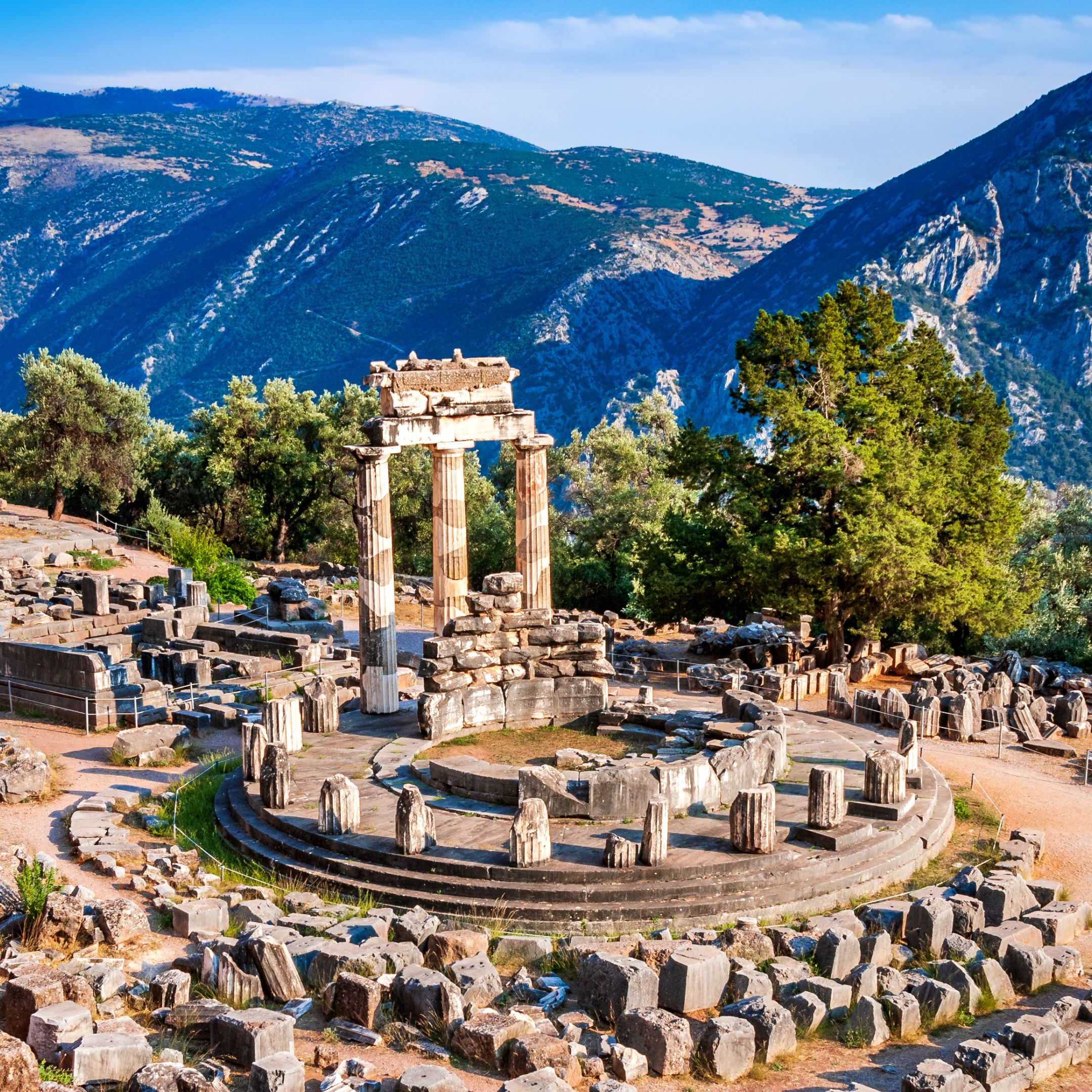Las ruinas del Templo de Apolo en Delfos, el ombligo de la TIerra para la antigua Grecia