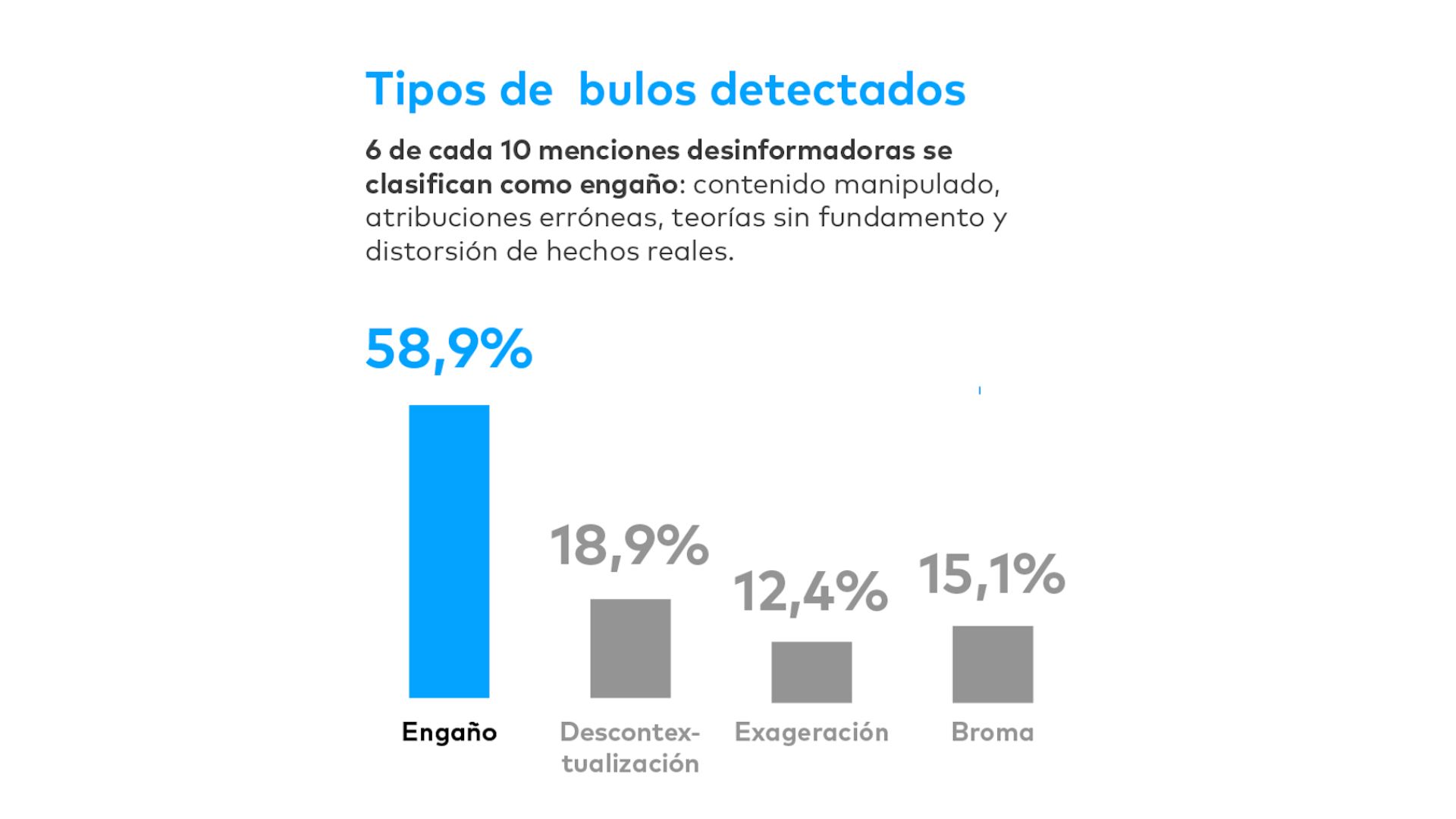 • 60% de los bulos detectados son engaños completos.